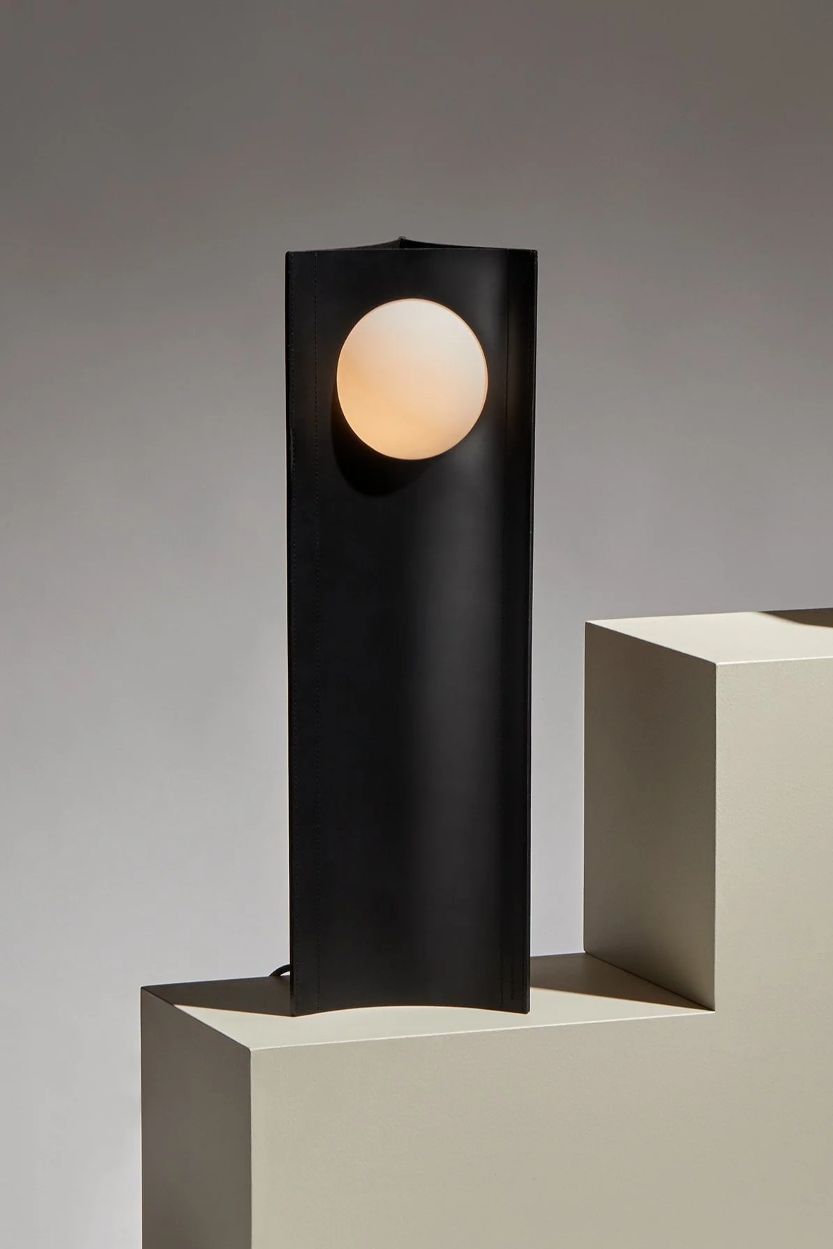 A unique collaboration between Studio Aristotelis Barakos and Aumorfia, the Hecate lighting collection unveils a captivating blend of modern elegance and ancient mysticism. A tabletop lamp, a floor lamp, and a pendant lamp are meticulously handcrafted from pieces of sumptuous leather, stitched along the edges to form a modern interpretation of a tripod with a radiant sphere suspended within.