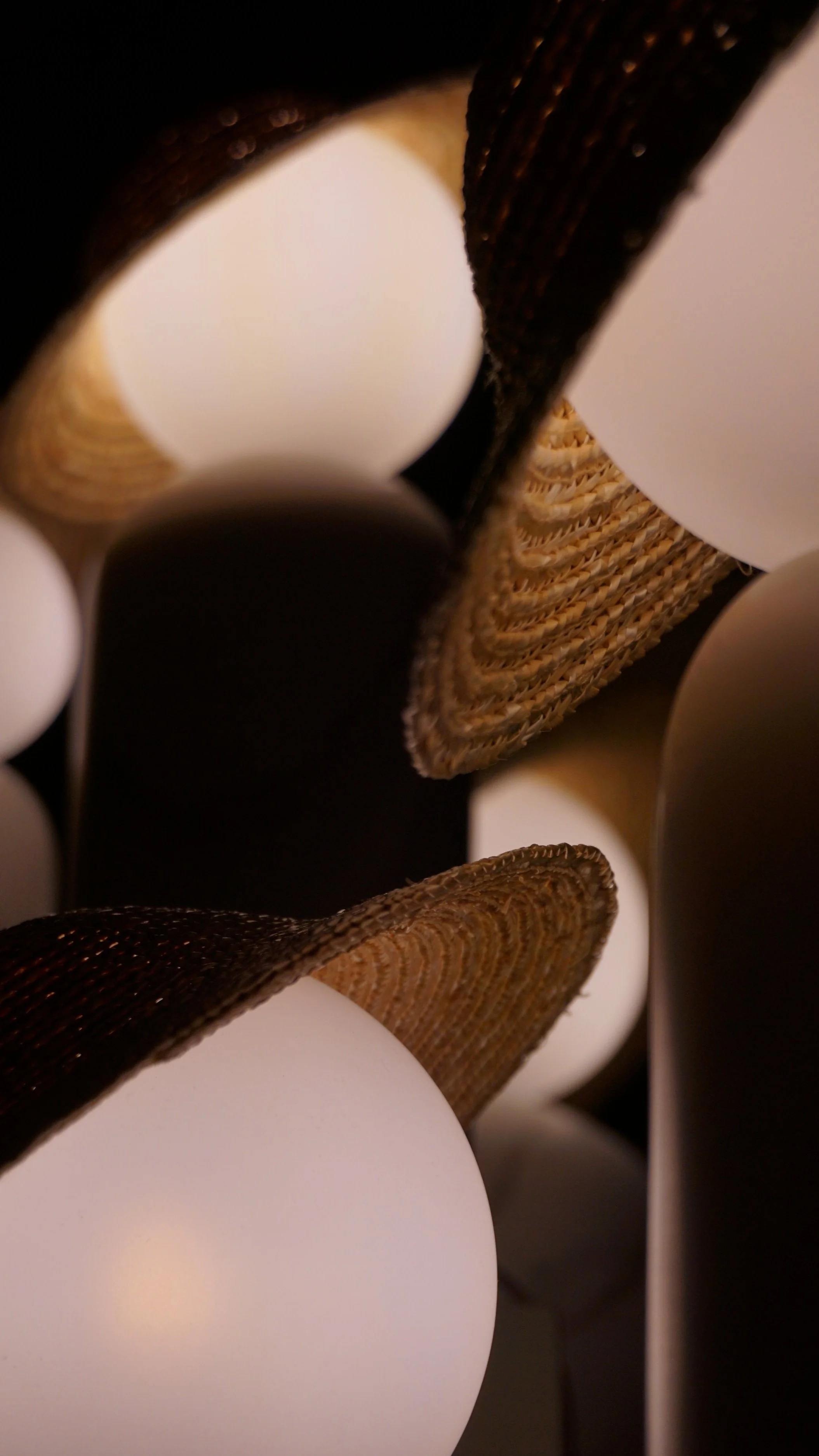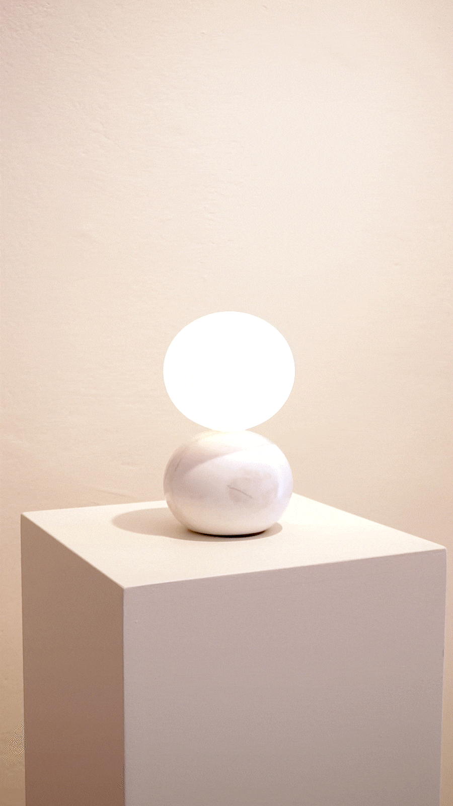 Théros 0.2 is characterised by its cute personality and the way the opaque glass head is balanced on its spherical body. As with every lighting object in Théros, it features a palette of materials that celebrate its Mediterranean character.